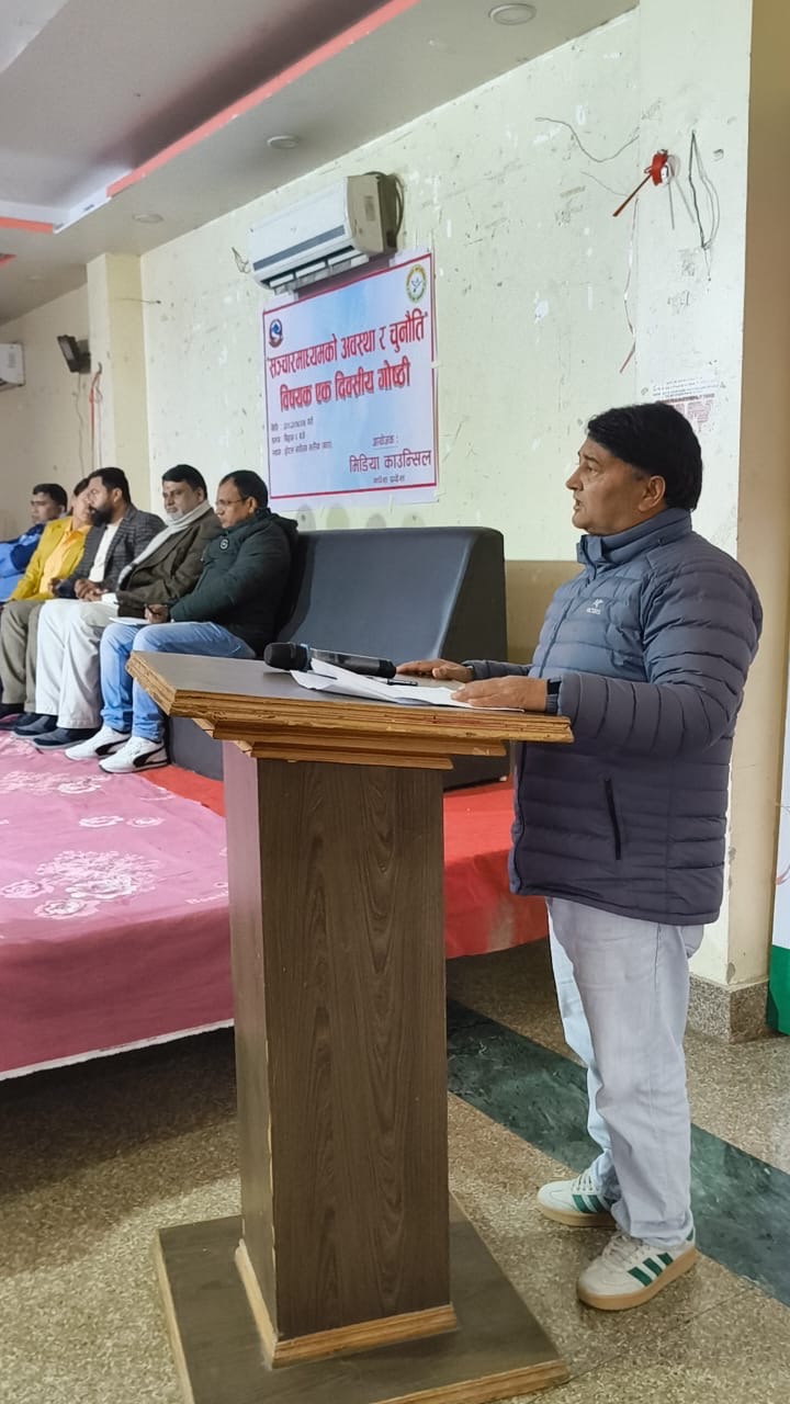 स्थानीय सञ्चार माध्यमलाई प्रवर्द्धन गर्दै आधुनिक प्रविधिसँग अद्यावधिक हुन सक्नु आजको आवश्यकता भएको उनको भनाइ थियो। मिडिया काउन्सिलका अध्यक्ष सुरेश यादवको अध्यक्षतामा सम्पन्न कार्यक्रममा नेपाल पत्रकार महासंघका केन्द्रीय सचिव अशोक तिवारी, लेखा समिति संयोजक केसी लामिछाने, मधेस प्रदेश अध्यक्ष श्याम बन्जारा, पर्सा अध्यक्ष ओमप्रकाश खनाललगायत बारा–पर्साका सञ्चारकर्मीहरूको उल्लेखनीय सहभागिता रहेको थियो।