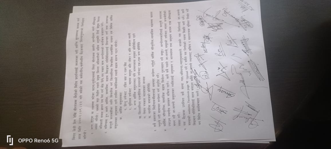 बैठकले सञ्चारमाध्यमलाई धार्मिक, सांस्कृतिक तथा सामाजिक सद्भावमा असर नपर्ने गरी संवेदनशील र जिम्मेवार पत्रकारिता गर्न आग्रह गरेको छ। सद्भाव बिगार्ने गतिविधि वा समूहप्रति कडा निगरानी राखी कानुनी दायरामा ल्याउन स्थानीय प्रशासन सक्रिय रहने निर्णय पनि गरिएको छ।