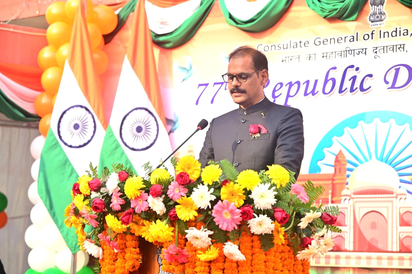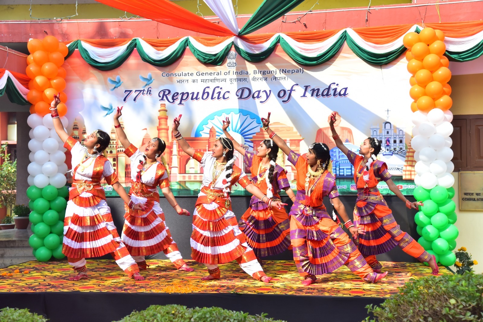 भारतको ७७औँ गणतन्त्र दिवसको अवसरमा वीरगञ्जस्थित भारतको महावाणिज्य दूतावासले आइतबार विशेष कार्यक्रमको आयोजना गर्दै उत्साहपूर्ण वातावरणमा दिवस मनाएको छ।